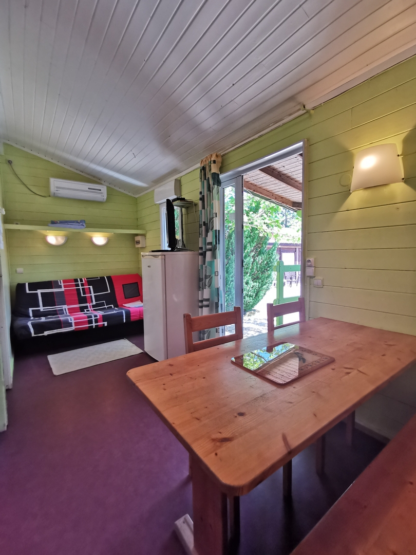 Ce chalet est disponible à la vente au camping l'Oasis des Garrigues à Vogüé en Ardèche.
