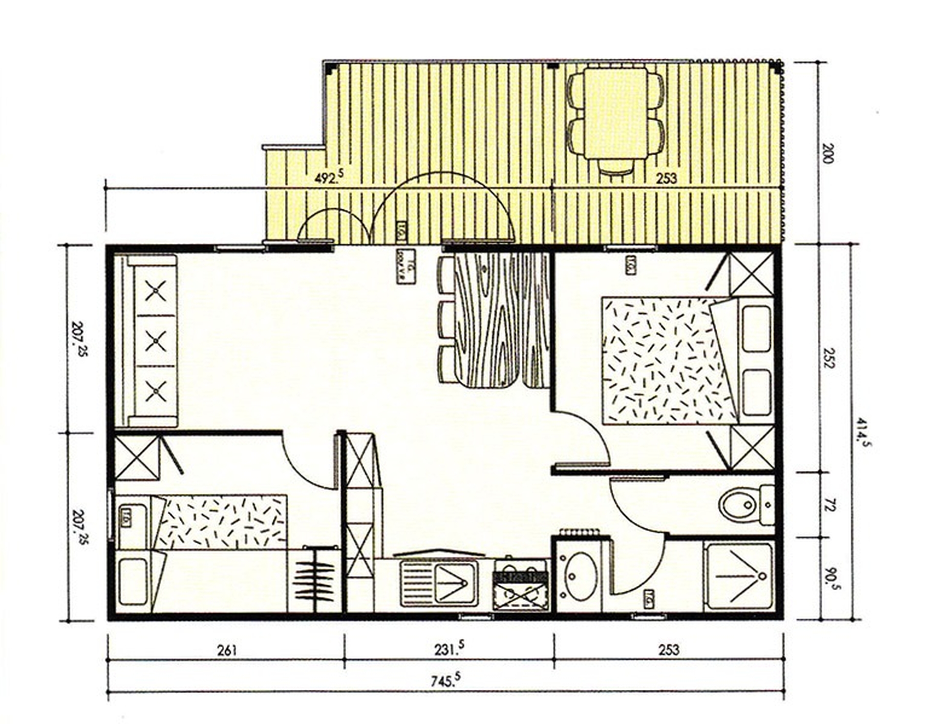 - Terrasse couverte avec 1 table, 6 chaises.